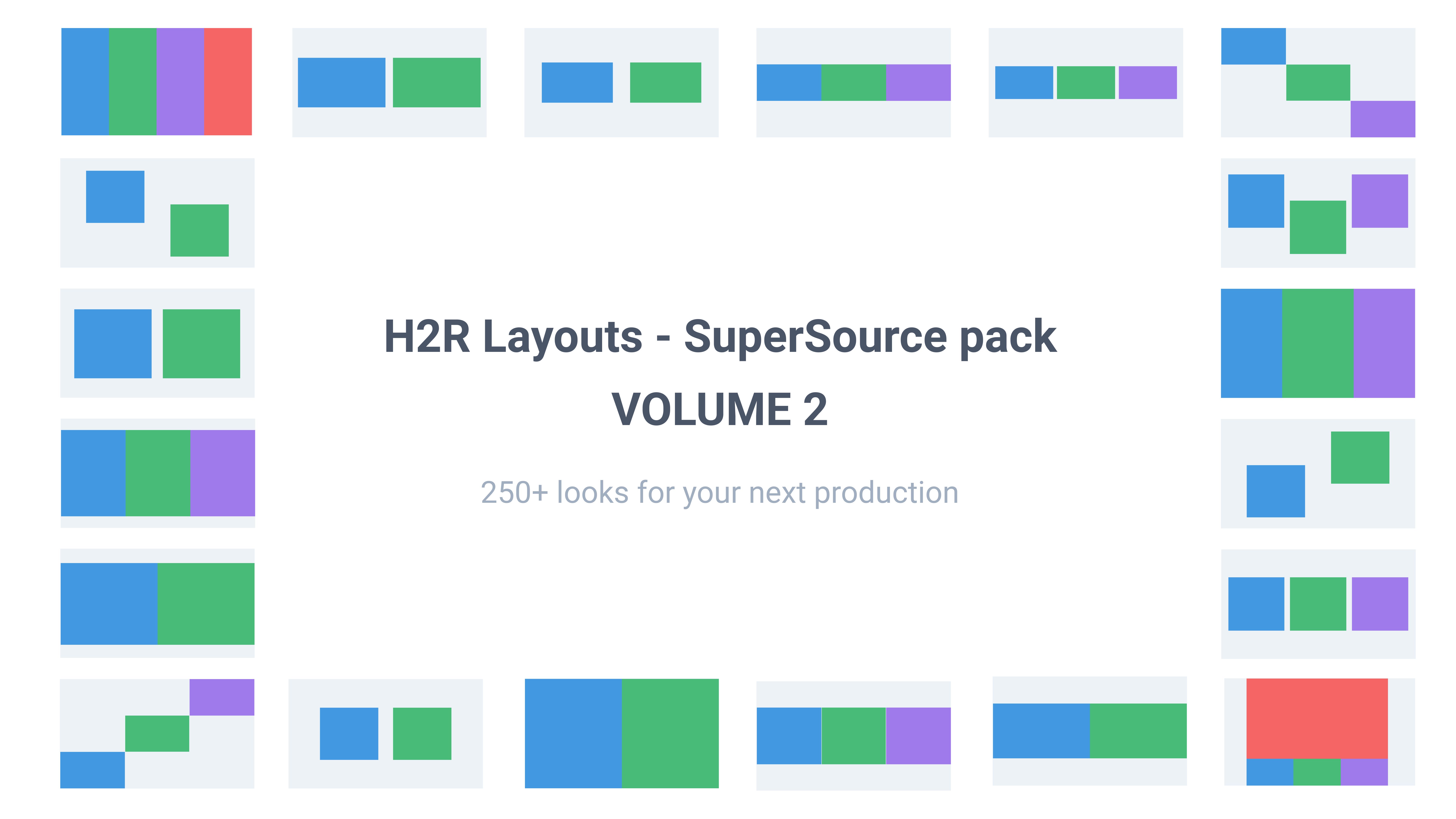 With this purchase, you will get instant access to over 250 SuperSource layouts, hand-made by John at Here to Record. This new re-release includes.. 270 layouts and macros, ready to use.Reference PDF with all layouts and their IDs.Alt versions of many layouts for graphics.Images of all layouts (perfect for Companion). While developing H2R Layouts - I made many layouts along the way and wanted to save you the trouble of making them yourself. For your convenience (and sanity), the reference PDF shows all of the possible layouts as well as their name, so you can quickly find the ones you love. Your purchase is helping the development of H2R Layouts, so a big thanks for that! https://h2r.li/layouts
