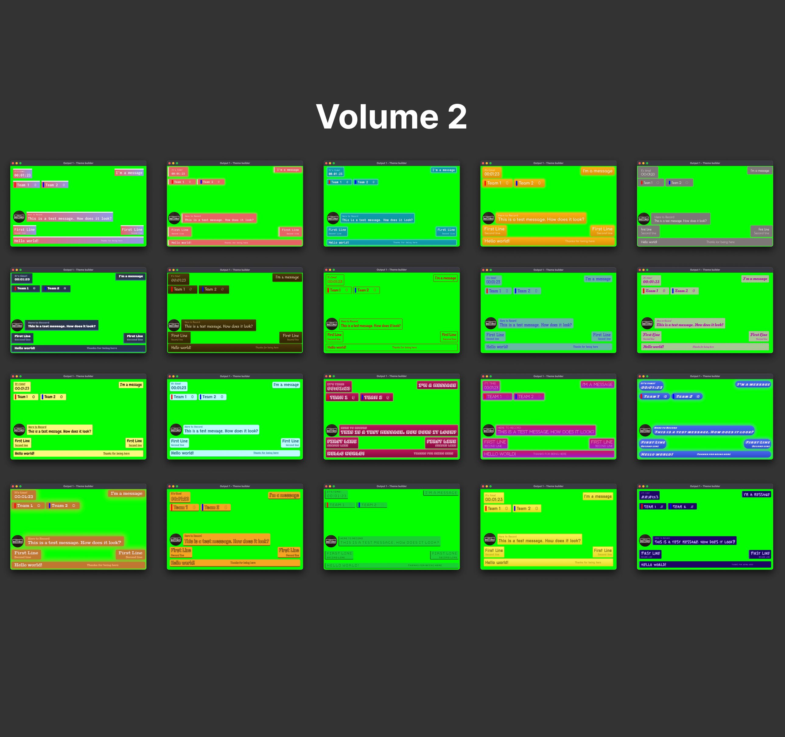 20 hand-crafted themes for H2R Graphics v2. Ready to be imported and used on your next video production. Included 20 themesLinks to recommended fontsJSON files to import into H2R Graphics v2 Heads up: This theme pack comes free with your H2R Graphics v2 licence!